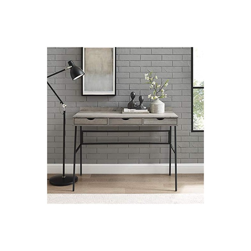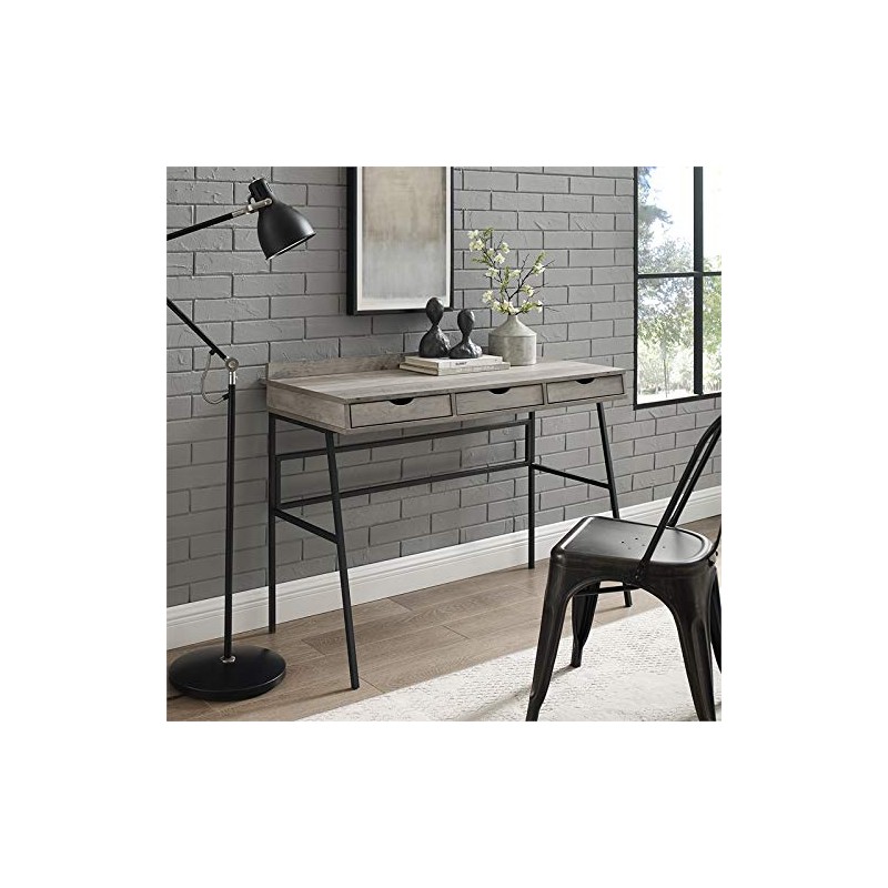 Walker Edison 42" 3-Drawer Work from Home Office Laptop Desk Angled Front - in Rustic Grey Wash