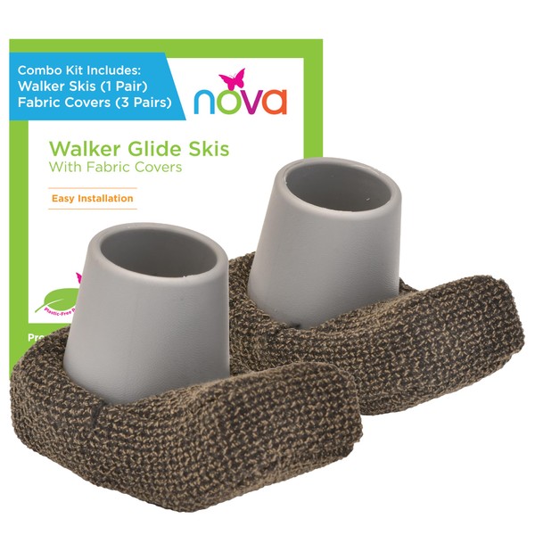 - NO MORE TENNIS BALLS! Get Walker Skis with Fabric Covers! The ideal folding walker glide option for indoor and outdoor surfaces. Adds Style, Safety and Mobility to your folding walker and easily glides over door jams and small barriers. UNIVERSAL FIT for all folding walkers with 1 1/8” tube shaft diameter. Includes 1 pairs of Ski Glides and 3 sets of Fabric Covers