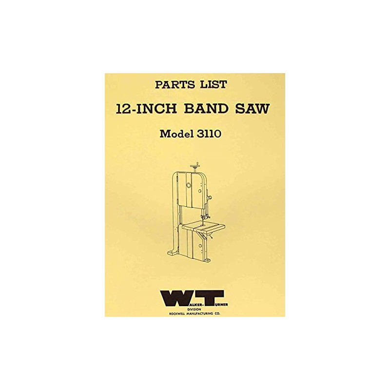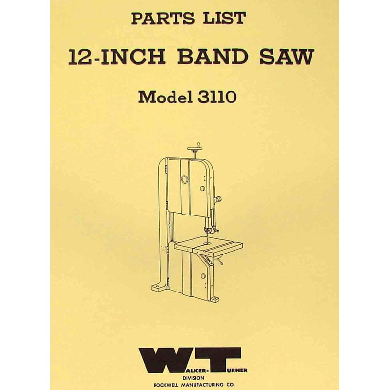 This is a reproduction, not a photocopy, of an original Walker Turner Model 3110 12-inch Band Saw Parts Manual.