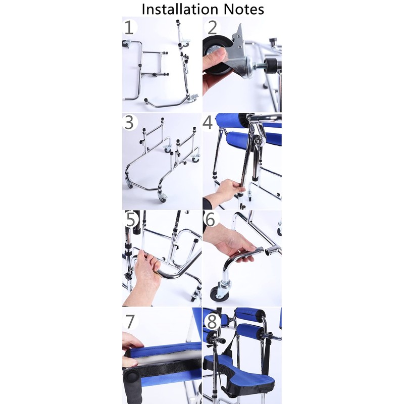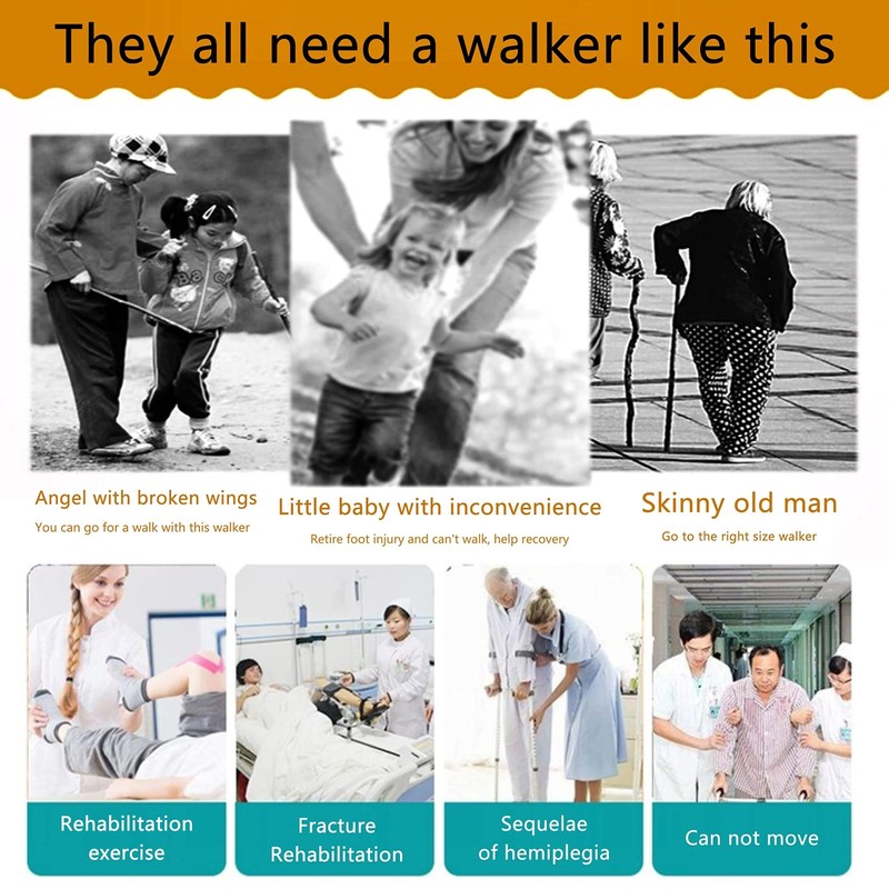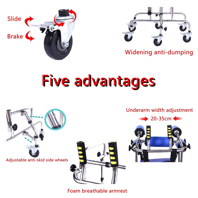 👑👑👑👑👑🏆👑👑👑👑👑Our walkers are dedicated to helping people who are inconvenient to move.Everyone is eager for a convenient life and good things, people with reduced mobility will have stronger inner needs, they want independence and do not want to be a burden on their families.Product Name: Children's WalkerProduct color: blue + silverProduct material: metal pipe, highquality spongeVehicle height: 7590CMSide wheel width: 70CMFront and rear wheelbase: 75CMLeft and right track: 40CMProduct advantages: antirollover, firm and stable, height adjustablePackage Included: 1x walkerPrecaution: 1. We only sell walking aids, other items are props.2. Due to manual measurement, the error is usually 13 cm.3. Due to different display tools, slight color errors may occur. This is not a quality issue. Please refer to the actual product.ToScope of application: It is used to assist walking or standing for patients with mobility impairments. Please perform rehabilitation training under the guidance of a doctor.📞📞 Note:1. Due to the T.I.G Welding technology, this walker has a slightly fishscale solder joint. This is not a quality issue and does not affect the use.2. If you have any questions, please contact us and we will get back to you as soon as possible.Customer feedback to us:Lightweight, Supportive, Vibrant WalkerGreat quality and as described. Highly recommend.It helps with me to be stableLight weight and perfectThe Walker Every back patient needsA functional, practical basic walker with armrest attachment to make it into a stand upright walker