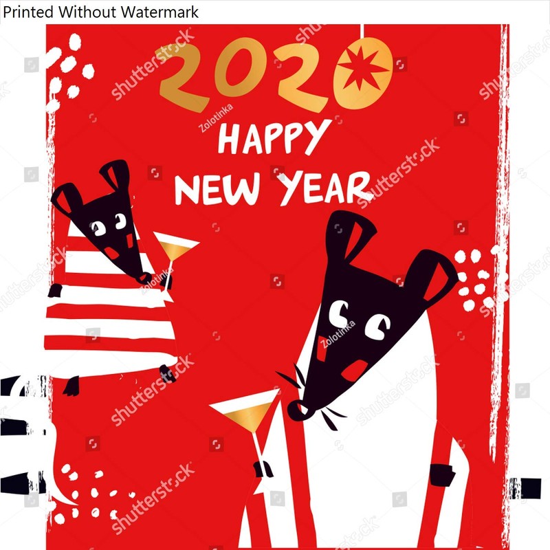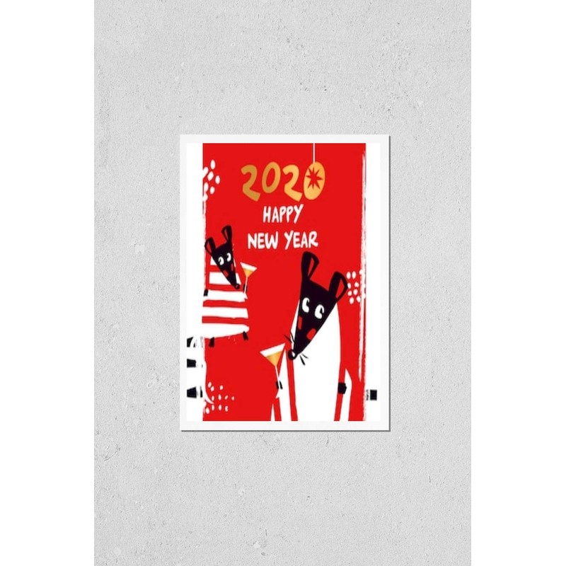 Wall Art Poster Print of Template Image for Happy New Year Party with Rat, Mice on Red Background. Lunar Horoscope Sign Mouse. Chinese Happy New Year 2020. Funny Sketch Mouse with Long Tail.