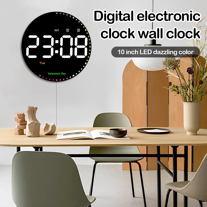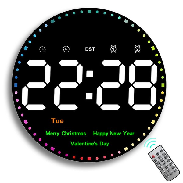 - Brightness adjustment design: the brightness can be easily adjusted to your needs via the remote control. 10 adjustable brightness levels (1-10) ensure a comfortable viewing experience. You can also set the LED digital clock to automatic dimming and the wall clock automatically adjusts the brightness to changes in the ambient light.