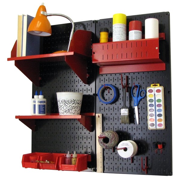Wall Control 30-CC-200 BR Hobby Craft Pegboard Organizer Storage Kit with Black Pegboard and Red Accessories