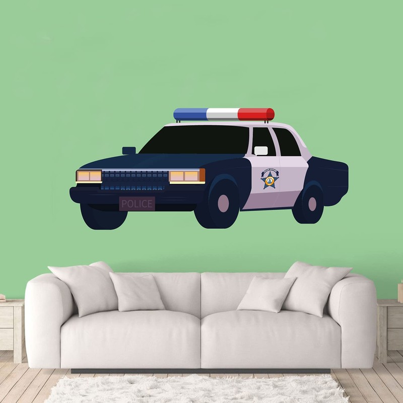 Wall Decal: Police Car Artwork Vinyl - Cop Vehicle for 911 Emergecy Decoration - 36" x 22"