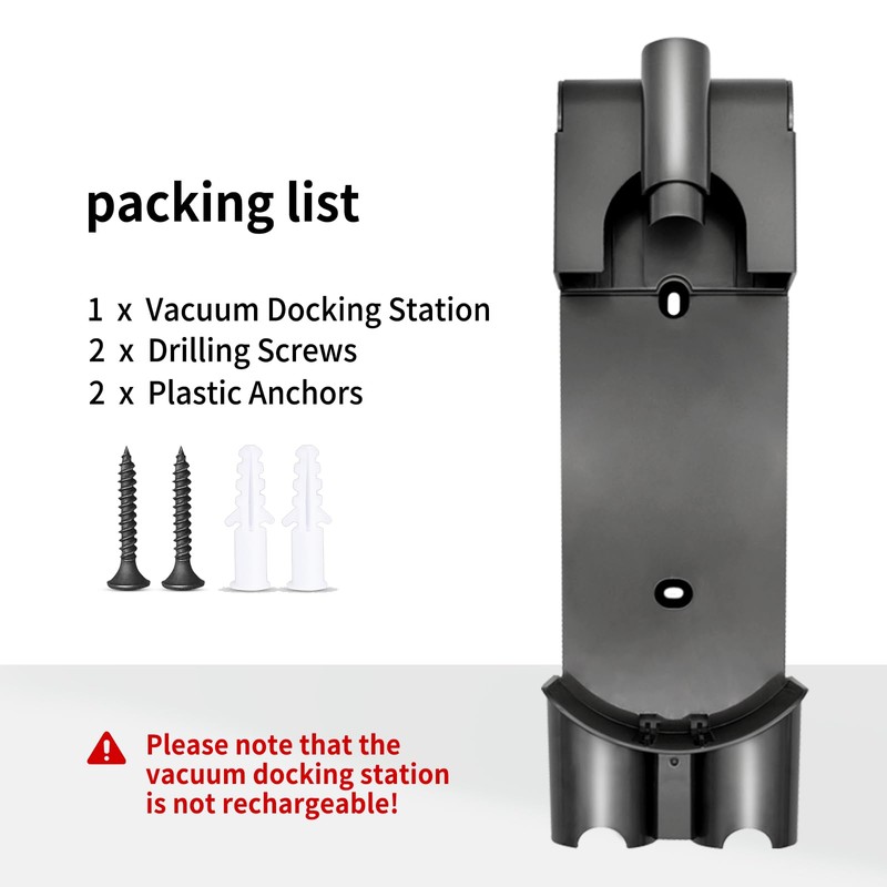- 【Package Contains】: Equipped with a docking station and screws for quick and easy installation, it ensures that the docking station is securely mounted on the wall. Each package includes 1 wall mount docking station compatible with dyson v7,v8, 2 screws and 2 retainers for a complete installation package.
