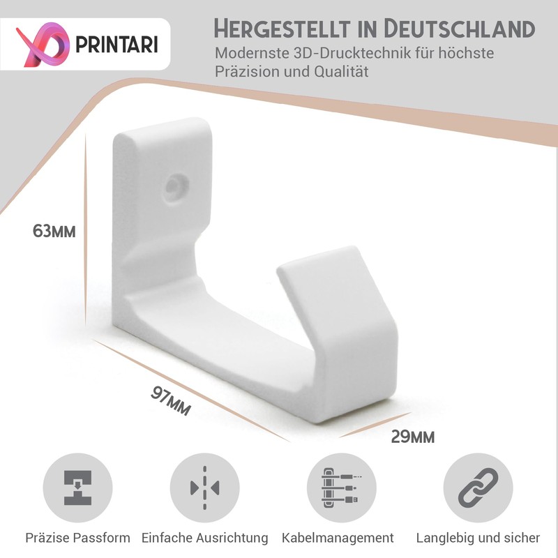 - Made in Germany, using 3D printing (PLA)
