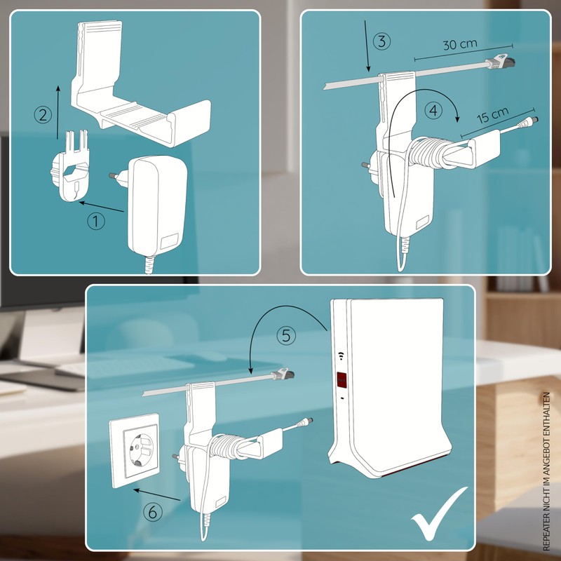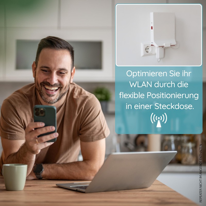 - Easy to install – completely without drilling: the holder is plugged directly into the socket together with the repeater – no screws, no gluing, no wall mounting required. So you are maximum flexible when placing your repeater.