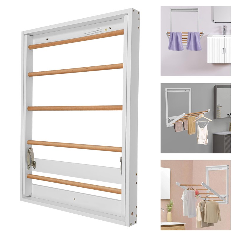 Wall-Mounted Foldable Clothes Drying Rack - Solid Wood Indoor Laundry Organizer for Bathroom/Balcony/Apartment | Space-Saving Garment Rack,11.02 lbs Capacity