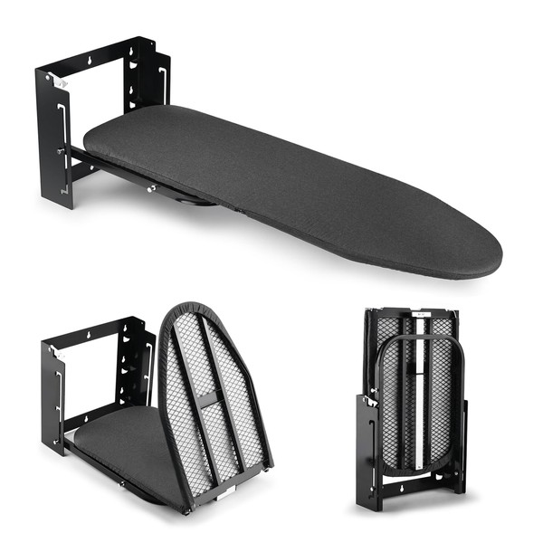 - 【Space Saving】: The ironing board wall mounted can be folded up and down easily, freeing up storage space and keeping it flush with the wall for an aesthetically pleasing look. When open, it measures 36.2 inches by 12.2 inches, but when folded, it's 19.7 inches in length and 12.2 inches in width. Only 4 inches away from the wall, it's a good partner to save your space.