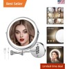 Wall Mounted Lighted Makeup Mirror, 8" Rechargeable Double-Sided Magnifying M...