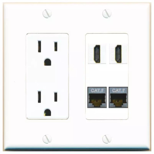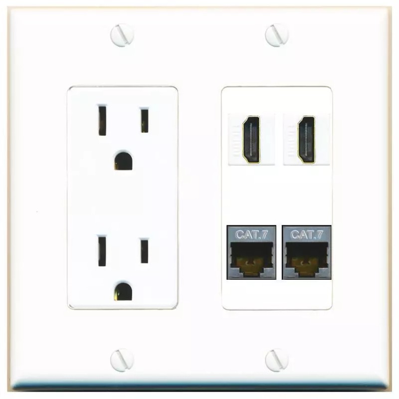 Wall Plate City 2 CAT7 2 HD Port Wall Plate w/Power Outlet White