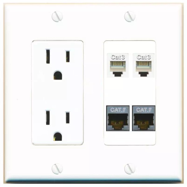 Wall Plate City 2 CAT7 2 PHONE Port Wall Plate w/Power Outlet White