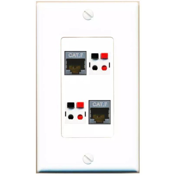 Wall Plate City [4 Ports] 2 CAT7 2 SPEAKER Wall Plate DecorZ White
