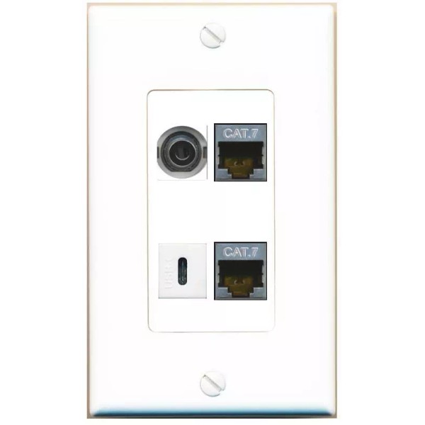 Wall Plate City [4 Ports] 3-5MM 2 CAT7 USBC Wall Plate DecorZ White