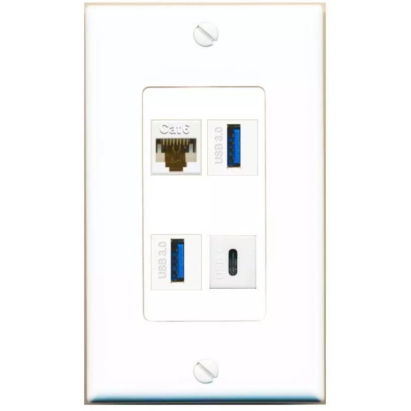 Wall Plate City [4 Ports] CAT6 2 USB-3 USBC Wall Plate DecorZ White