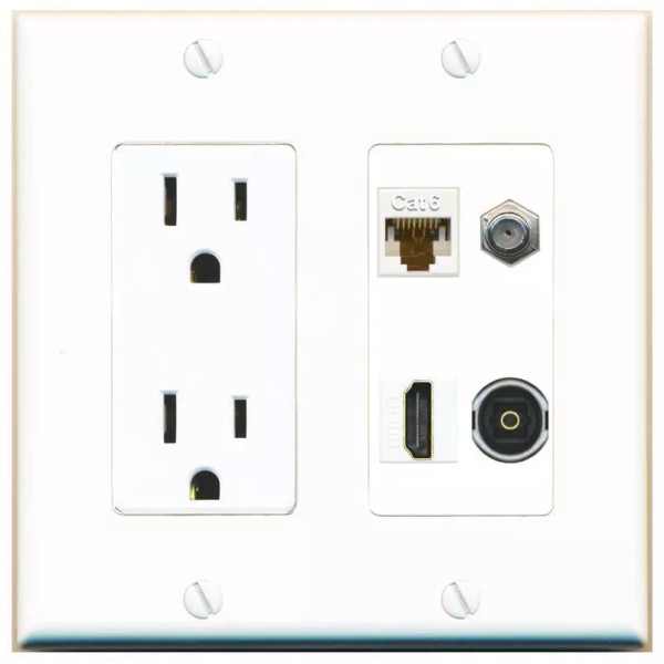 Wall Plate City CAT6 COAX HD TOSLINK Port Wall Plate w/Power Outlet White
