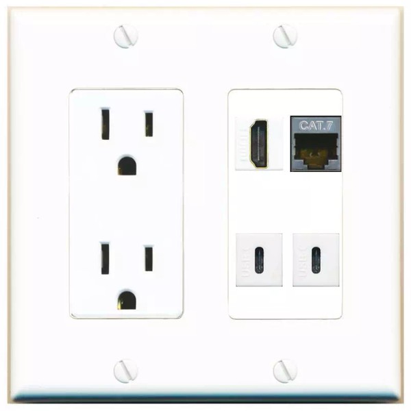 Wall Plate City CAT7 HD 2 USBC Port Wall Plate w/Power Outlet White