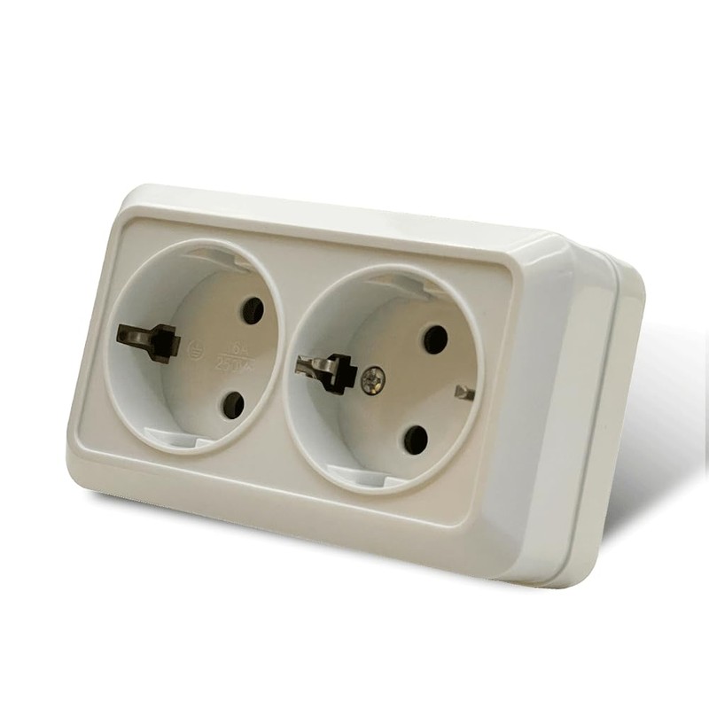 Wall Socket Surface Mount Wall Sockets Set Indoor Wall Sockets 250V AC 16A White Double Socket with Earth