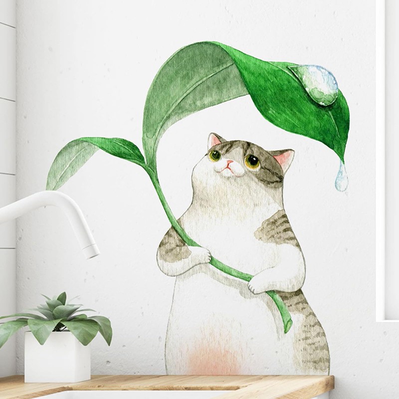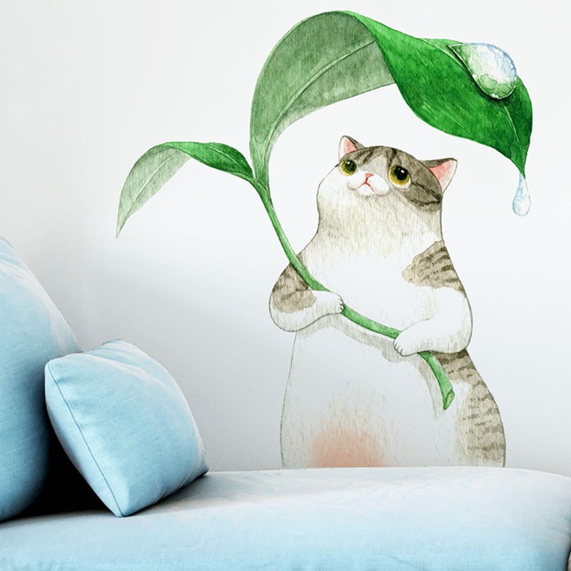 Wall Sticker Animal Cute Cat Plant House Plant Flower Butterfly Wallpaper Sticker Painting Interior Stylish Cat Butterfly Wall Sticker Wallpaper Landscape PVC Material DIY Stylish Interior Wallpaper