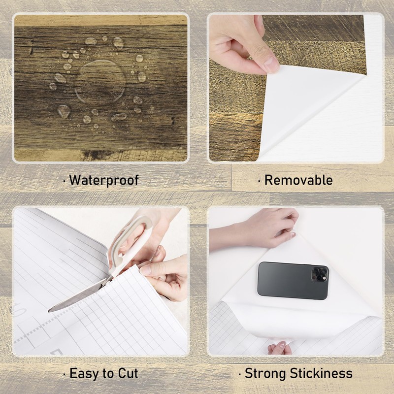- 🌞【Ease of Application】The brown/yellow wood contact paper has an adhesive backing that eliminates the need for other messy adhesives, just peel and stick. The wood grain contact paper is removable. If you want to remove the wood plank wallpaper, heat it with a hair dryer to soften the adhesive and then gently pull it off.