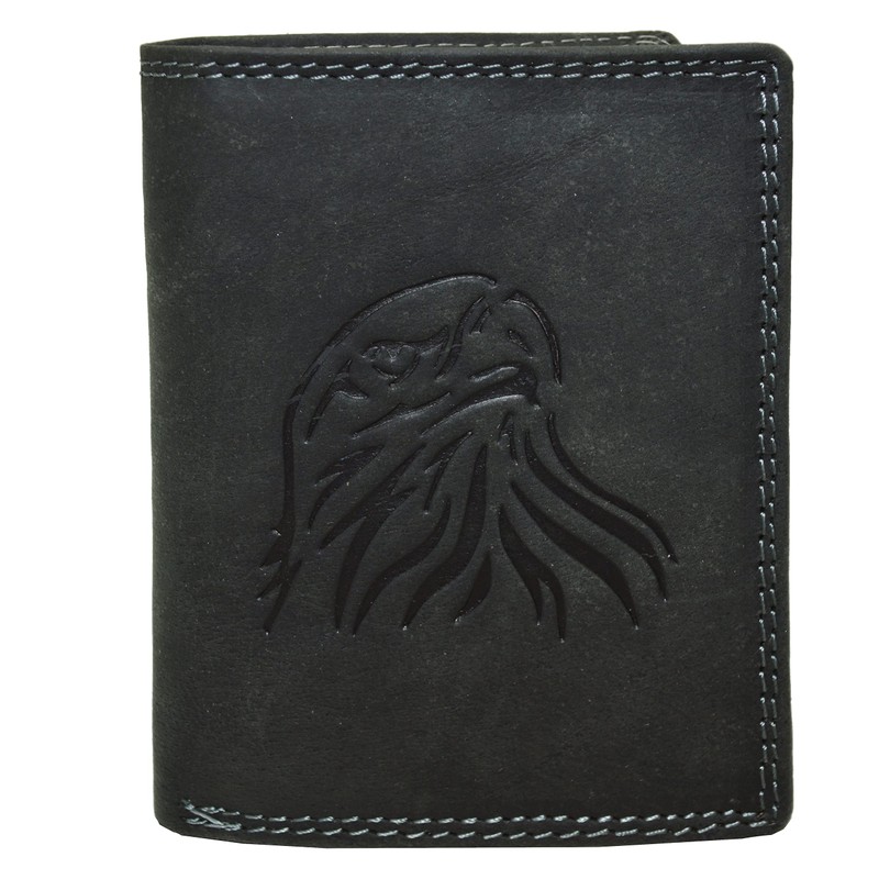 Wallet Buffalo Leather Eagle Embossed, black, Modern
