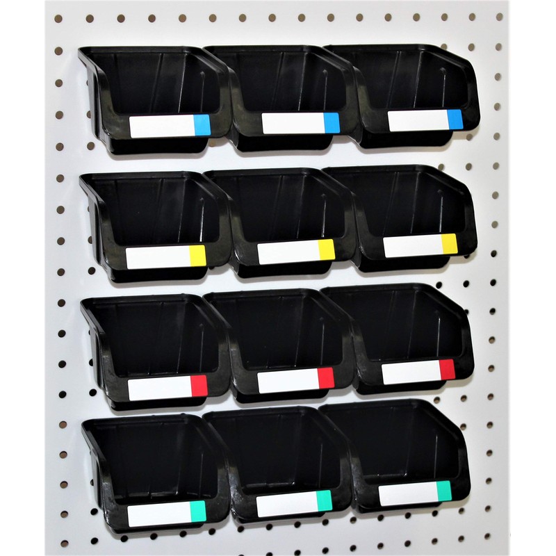 • Pegboard Bin Kits 12 Black Medium Bins with Labels...US Patent Pending