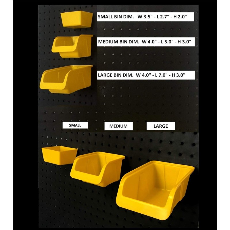 Wallpeg has the Complete Line of Pegboard Panels, Peg Board Bins & Cups, Peg Board Hooks for your Garage Organization and Storage Project. Our Pegboard Bins & Cup Help Create a Craft Workplace for Home or Office Keeps all the Small Items Organized and Handy. Peg board Basket Organizers make a good Garage Wall Organizer. Perfect for organizing pliers, drills, pencils, painting brushes, wrenches, screws, nuts, bolts, nails, clips, and other arts and crafts accessories. Redesign your organizing ways, hang up everything on your shelving boards. Could be used for workshop, retail shop shelving, garage workbench, pantry, shed pegboard wall, craft desk, hobby rooms — great storage solutions for small business owners. Tough and Rugged Bins have Stylish design tough plastic with Patented Design approved by the United States Patent Office. Wallpeg Bins are approved for use on all standard Pegboard and are easy to attach and remove, keeps all your items safely stored and organized. Bins for Pegboard have labels to code each of your individual parts and keep items separated and easily identified...no more pouring out cans searching for the item you need and wasting time. Wallpeg Part Bins help organize your life.