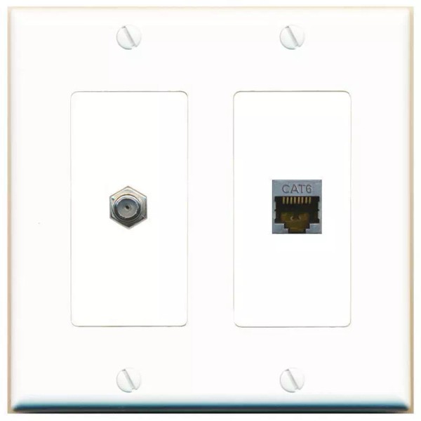 Wallplate City CAT6-SHIELDED COAX Wall Plate-2 Gang White