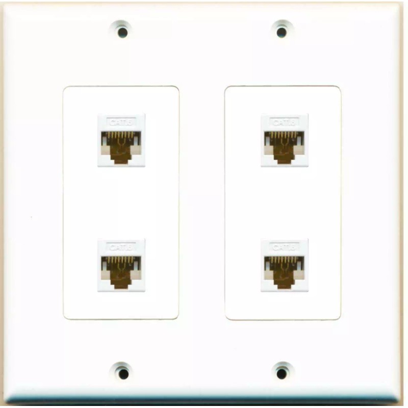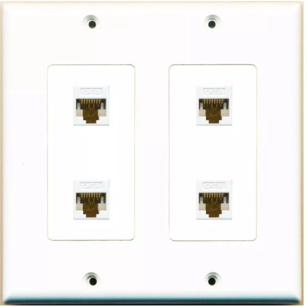 Wallplate City DecorZ - [ 2 GANG ] Decorative 4 CAT6 White Wall Plate White
