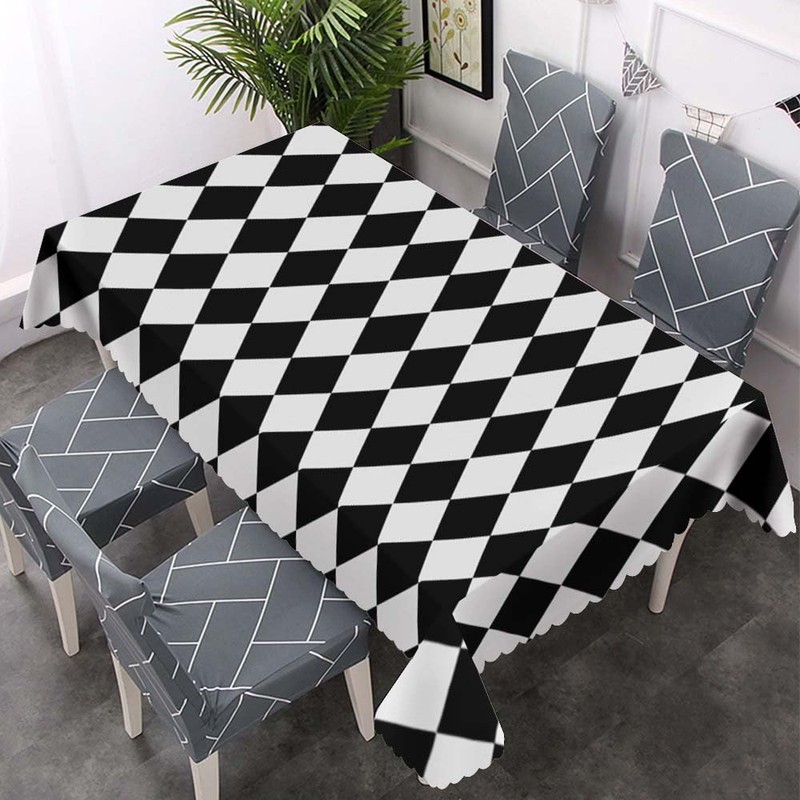 Walmsco Tablecloth Black White Diamond Pattern Decor For Dining Room Kitchen Rectangular Table Cover 132 * 178cm
