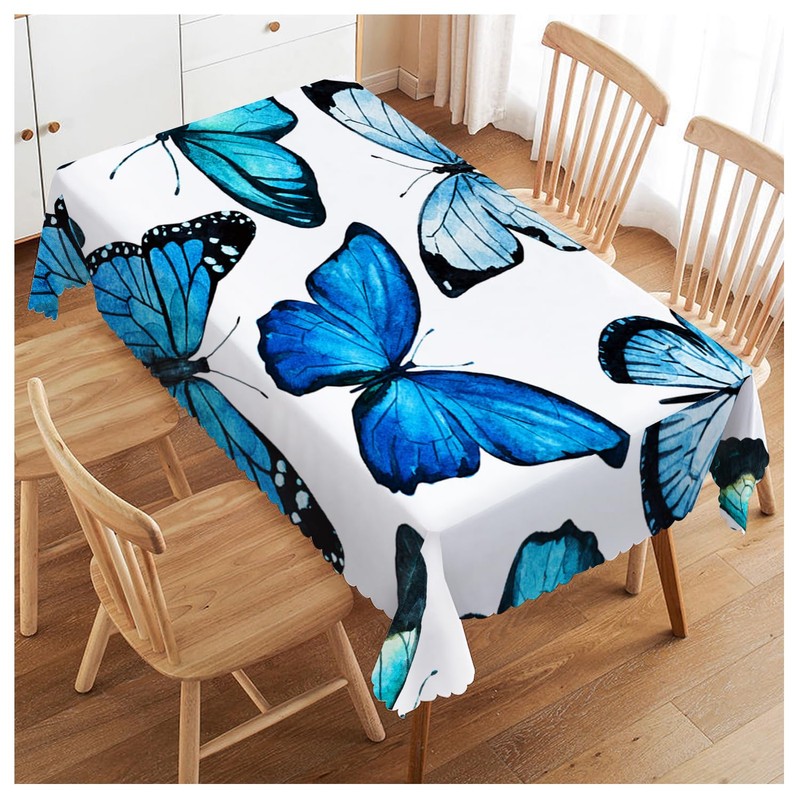 Walmsco Tablecloth Blue Butterfly Decor For Dining Room Kitchen Rectangular Table Cover 132 * 178cm