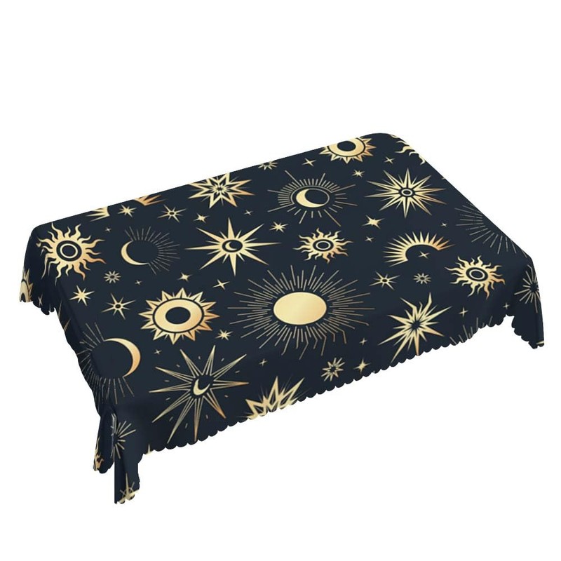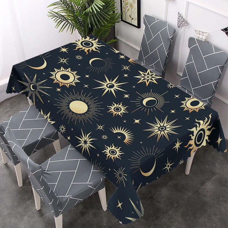 Walmsco Tablecloth Golden Sun Moon Decor For Dining Room Kitchen Rectangular Table Cover 132 * 178cm