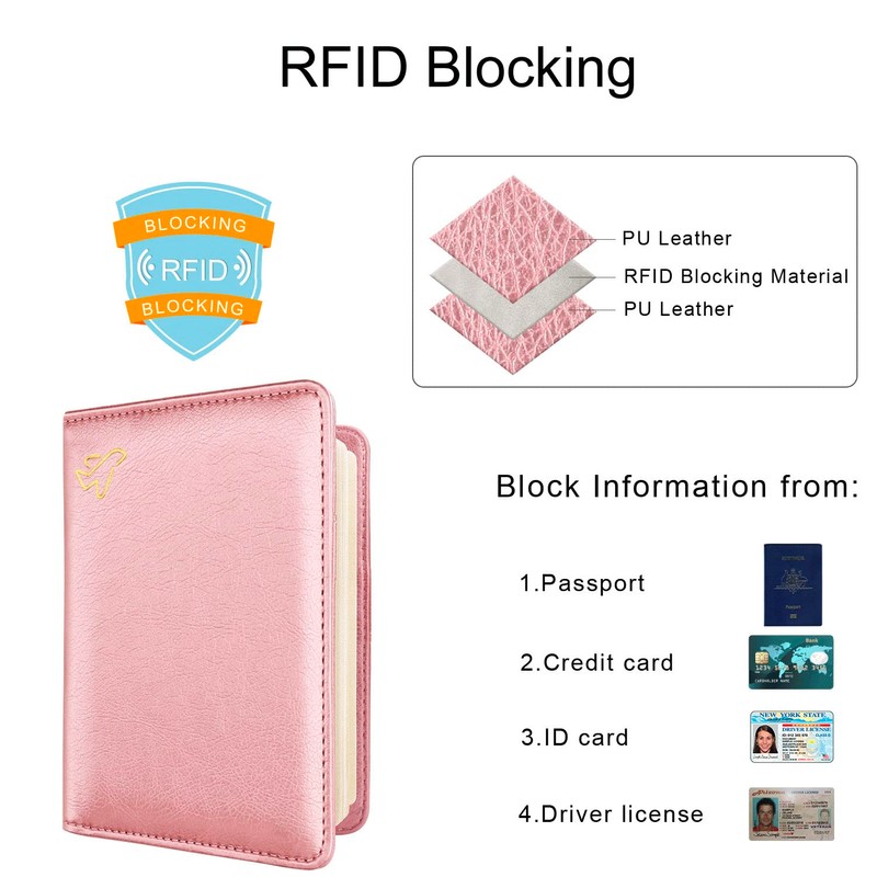Security Protective Passport Holder:RFID blocking shield material inside, this RFID Passport Holder helps prevent personal account information disclosure. Comes with an elastic strap which can secure items inside, passport cover will not open in your bag.
