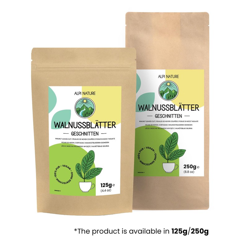 Walnussblättertee 125g von Alpi Nature, Tee lose, Walnussblätter getrocknet und geschnitten zur Zubereitung von Walnussblätter Tee, Walnussblatt Tee und Kräutertee