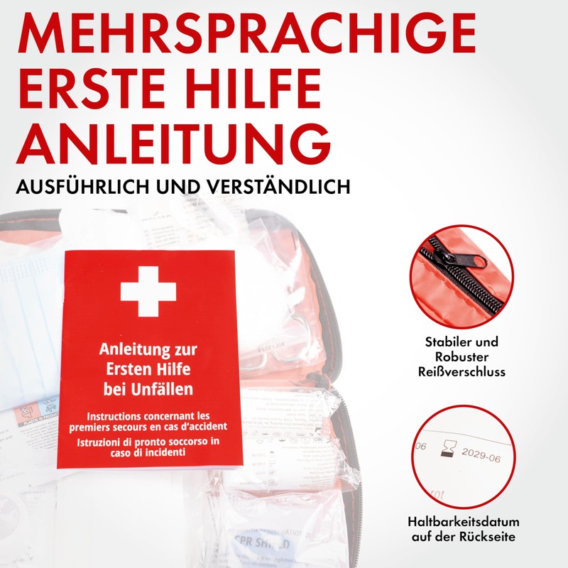 - Immer sicher unterwegs - Das Mitfhren eines Erste Hilfe Kasten ist in Deutschland, ?sterreich, Belgien, Luxemburg und vielen weiteren europ?ischen Staaten gesetzlich vorgeschrieben und somit Pflicht. Setzen Sie auf Sicherheit und rsten Sie Ihr Auto entsprechend mit einem Erste Hilfe Set Auto aus. So sind Sie im Ernstfall ausgestattet und k?nnen sichere Erste Hilfe leisten. Von vergleich.org ausgezeichnet mit der Note Sehr Gut* (Details auf siegel.vergleich.org/XH8HSBB - Test vom 04.11.2022)