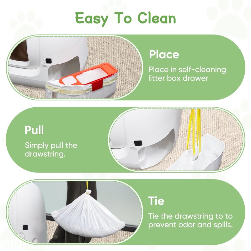 - Keep Your Litter Box Clean and Tidy: These cat litter liners help maintain the cleanliness and tidiness of your automatic cat litter box. They protect the litter box from dirt and stains, making it easier to clean and maintain. They are a great helper for pet lovers who want to keep their cat's space clean and fresh