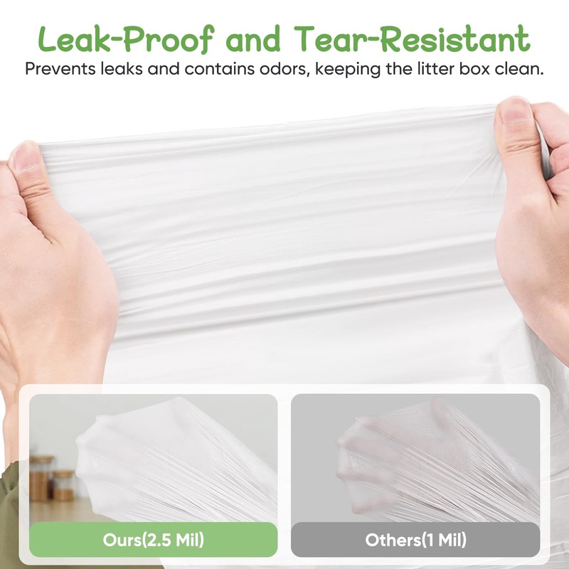 - Leak-Proof & Tear-Resistant: Crafted from premium materials with a strong, reliable seal, these cat litter box liners are built to last. Tear-resistant, scratch-proof, and waterproof, they effectively prevent leaks and lock in odors, keeping your litter box cleaner and fresher for longer. Plus, changing liners is a breeze, making cleanup effortless and hassle-free