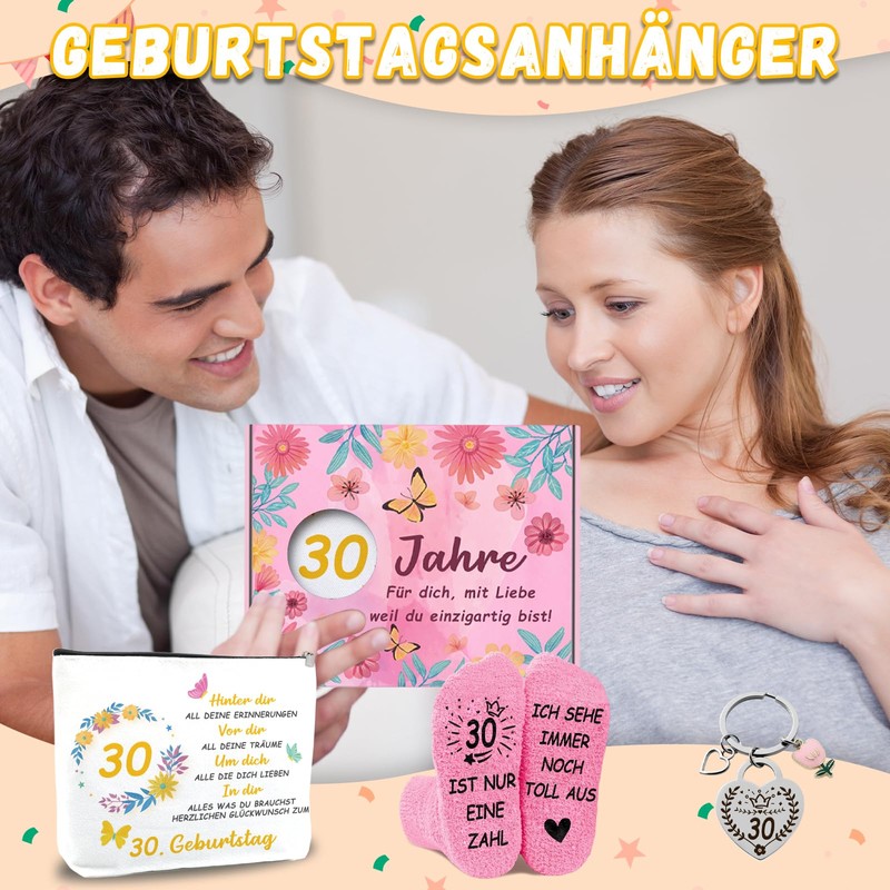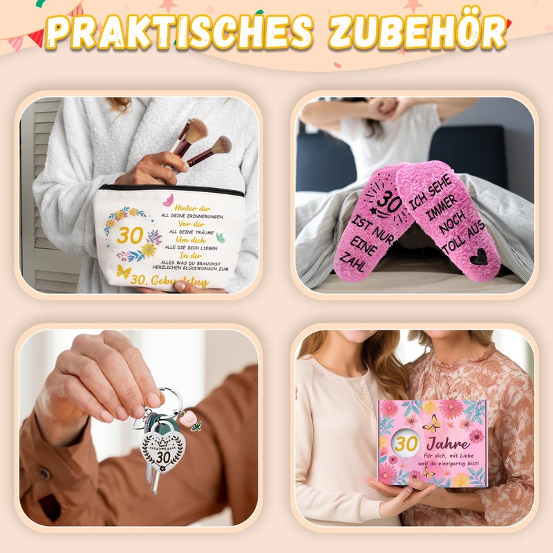 - Exclusive gifts: this women's gift set contains a cosmetic bag, a pair of socks and a key ring. These practical accessories are beautifully designed and stylish and are perfect as a gift 30th birthday woman.