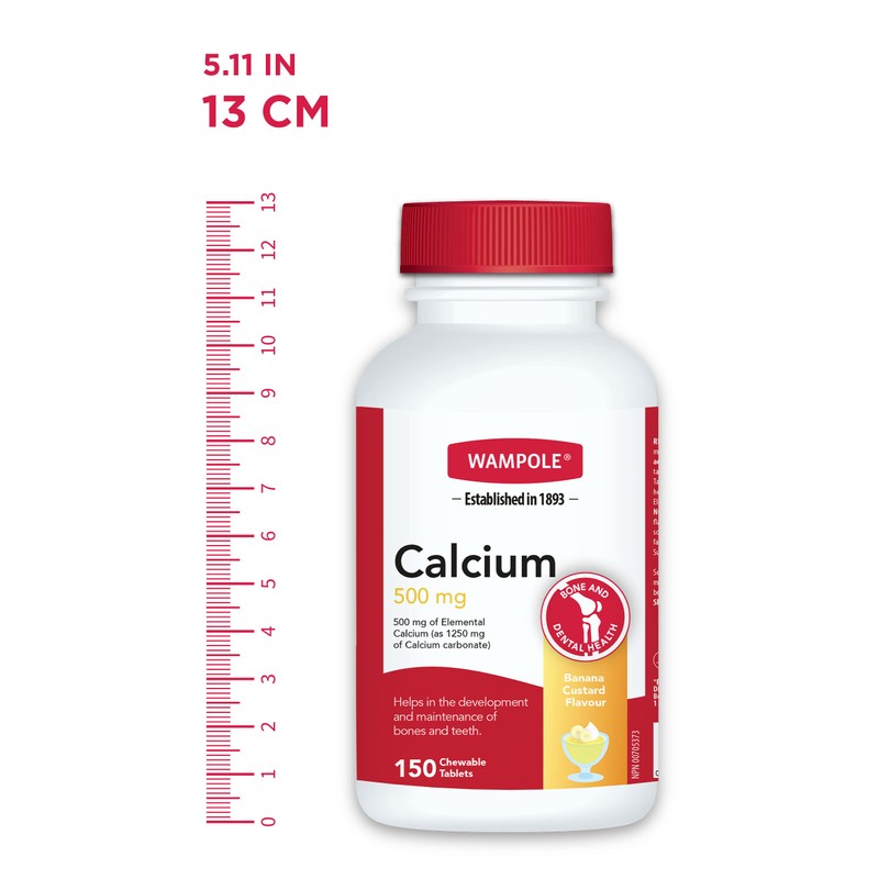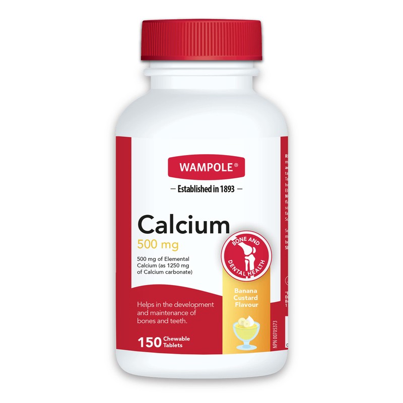 Wampole Calcium 500 mg – Banana Custard Flavour – 150 Chewable Tablets