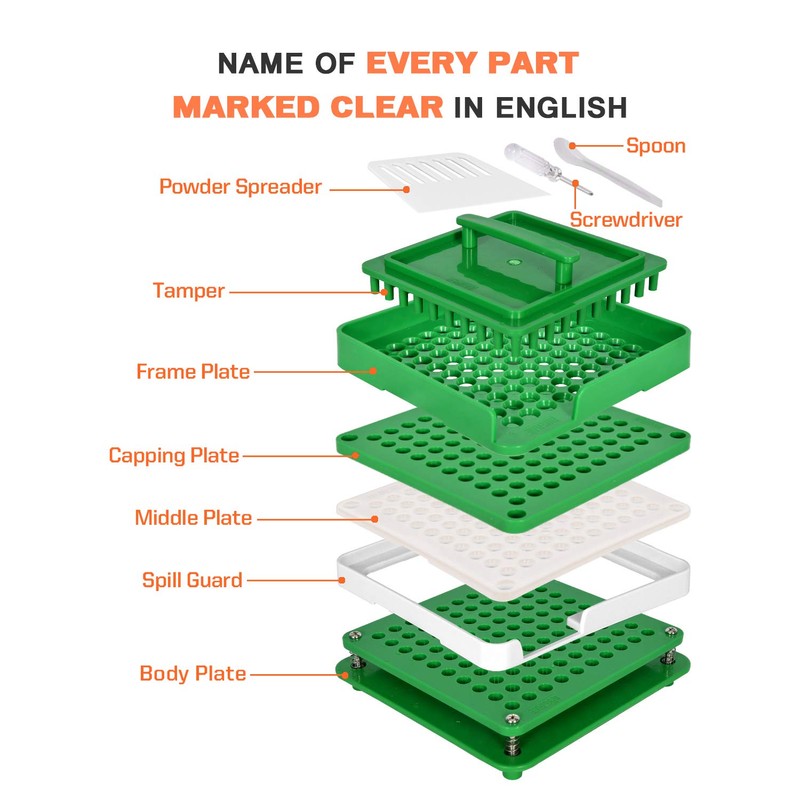 - Safe & durable: we do everything we can to ensure the health of our customers. Our capsule machine 000 is made of food-safe ABS, which is harmless to your health. The stainless steel springs and screws of our capsule filling machine 000 have been subjected to a fatigue test, impact and bending resistance, yield strength and other tests.