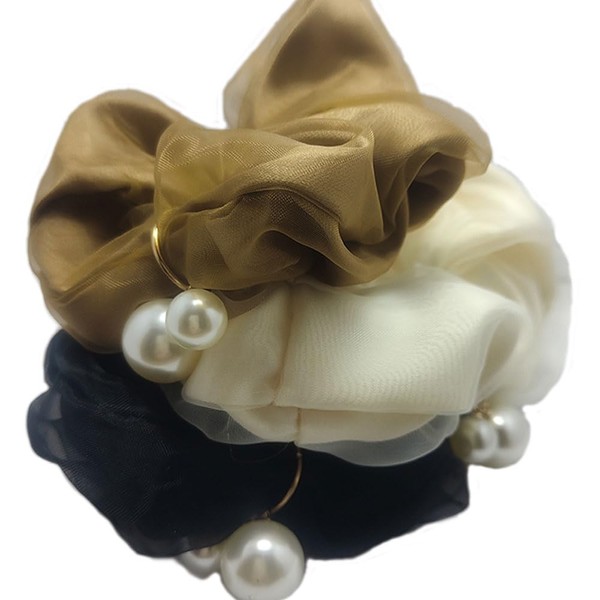 - Elegant Design: Featuring a pearl-embellished fabric, this 3-pack of scrunchies adds a touch of sophistication to any hairstyle.