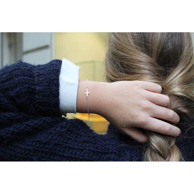 - Dimensions: the length of the bracelet is 15.5 cm and has an extension of 3 cm, so it can be better adjusted to fit your wrist. The size of the large cross is 1.5 cm x 0.9 cm and the small cross 1 cm x 0.5 cm.
