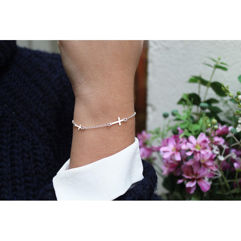 - Design: 925 Sterling Silver Two Cross Bracelet for Girls and Young Women. Fashionable and easy to wear jewellery made of real silver.