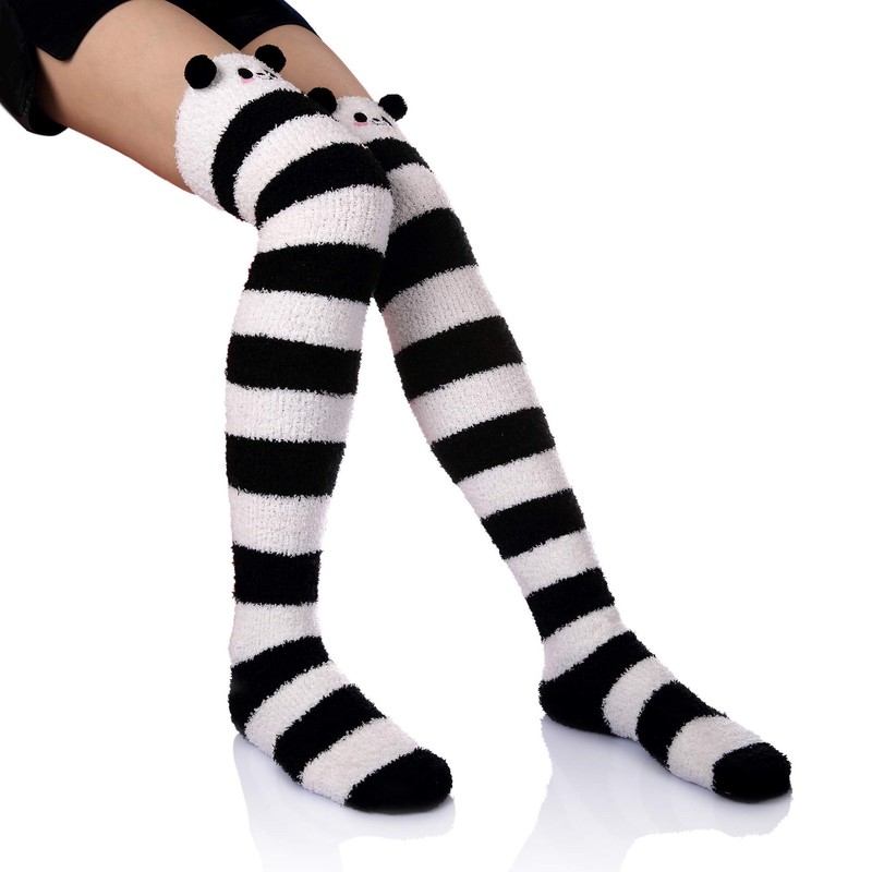 Wander G - Calcetines largos para mujer, con diseño de dibujos animados, cálidos, cálidos, a rayas, para las piernas, 2 pares de panda/gato, One Size
