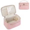 Wandering Nature Cosmetic Bag Women's Travel Makeup Bag Large Makeup Bag Organiser with Brush Compartment Toiletry Bag PU Leather Portable Makeup Bag, pink