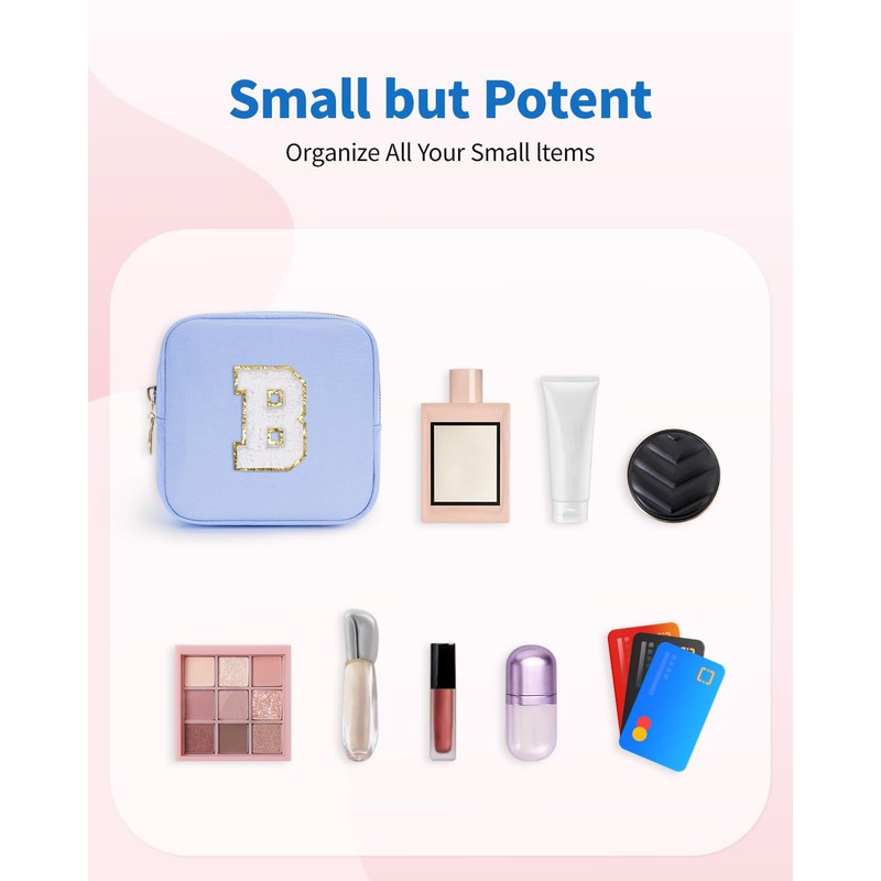 - 【Multi-Purpose】More than just a mini initial cosmetic bag, it’s a versatile essential for daily use. Store cosmetics, carry keys and phones, or use it as a mini toiletry bag or purse organizer. It’s stylish, practical, and perfect for any occasion or scenario.