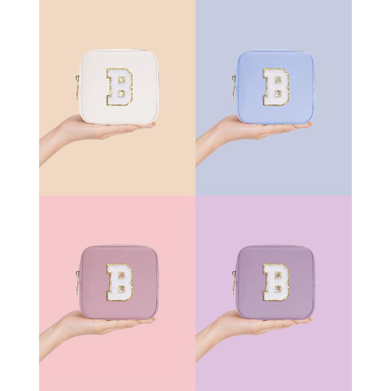 Wandering Nature Personalized Mini Initial Makeup Bag with Glitter Chenille Letter Patch, Small Preppy Makeup Bag with Slip-In Pockets(Patent Pending)