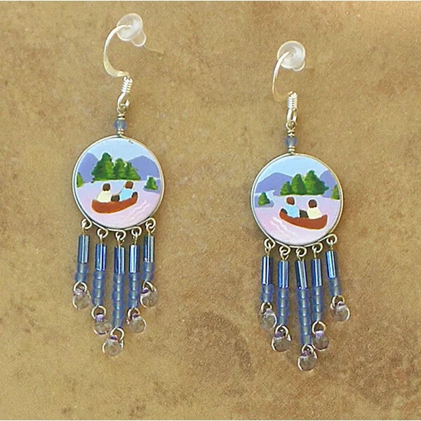 Wanderlust Canoers On Lake Dangle Earrings-Peruv