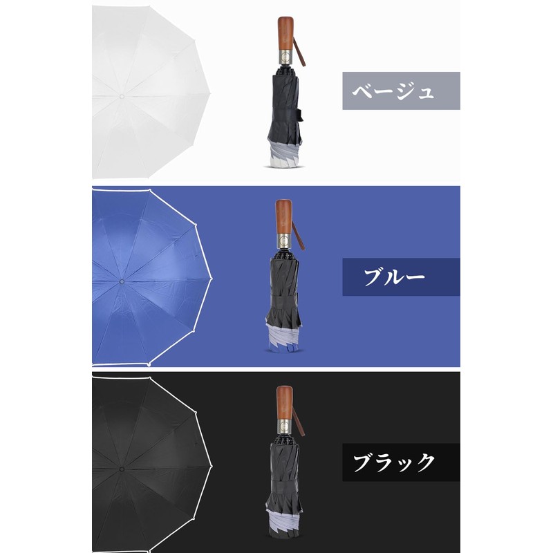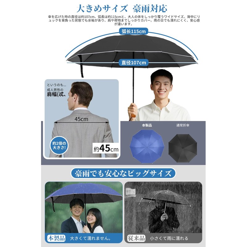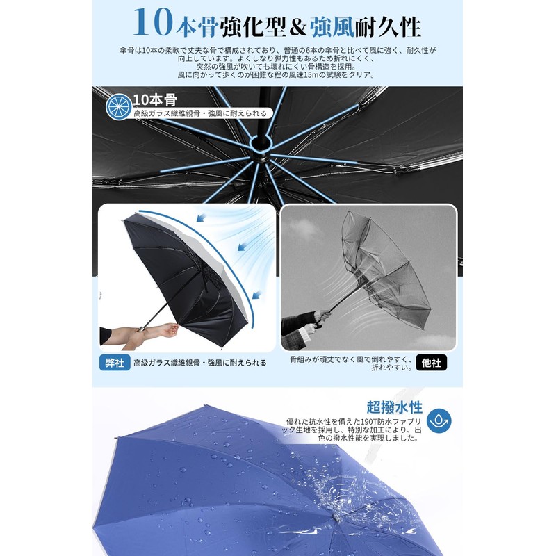 [WanderMore] Men's Folding Parasol, Large Size, Reverse Folding Umbrella, For Both Rain and Shine, 10 Ribs, Windproof, UV Protection, 100% Light Blocking, Heat Blocking, One-Touch, Automatic Opening