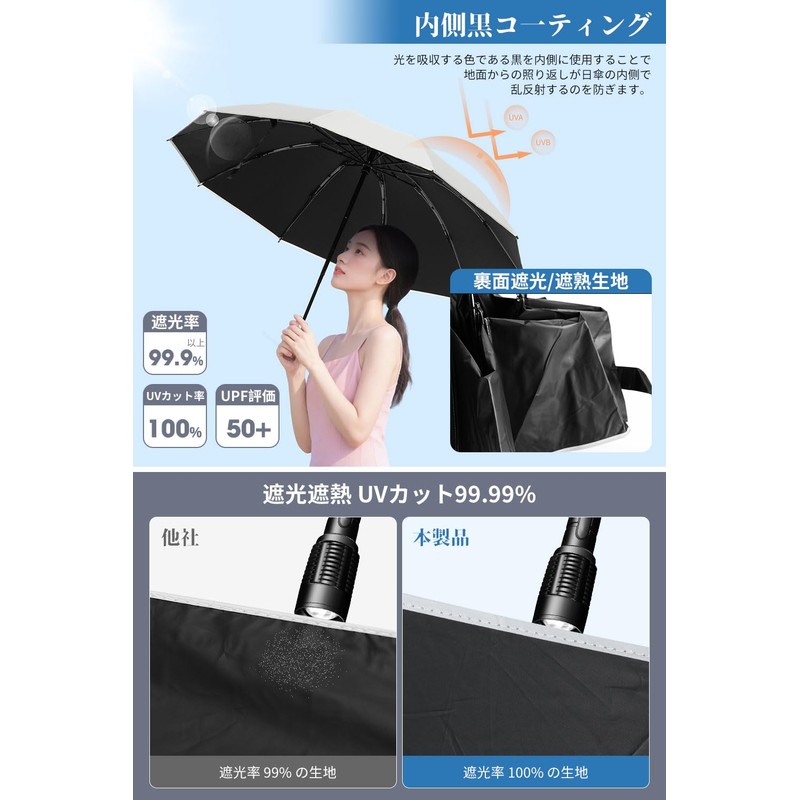 - (Full Blackout, Rain or Shine, 99.9% UV Protection with Black Coating) The inside of the umbrella is coated with a high-density black coating that blocks over 99.9% of UV rays. The light is completely shaded so that the light of your smartphone is not see-through even when you put it close to it. This model can be used safely in the summer with strong sunshine. It can be used all year round